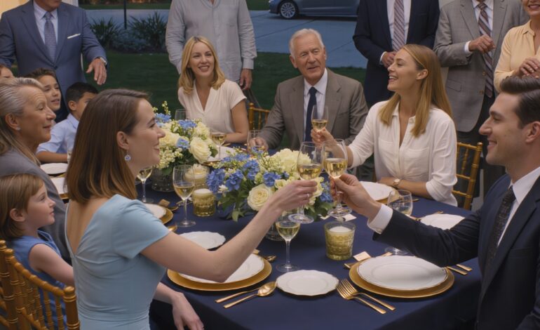The champagne tower lay in ruins. Glass glittered across the tiles like fallen stars. Guests stood frozen, faces pale, phones half-raised like they weren’t sure whether they were allowed to record real suffering.