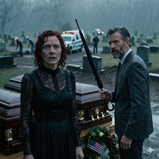 The rain fell in heavy sheets against the cemetery’s black umbrellas, as if the sky